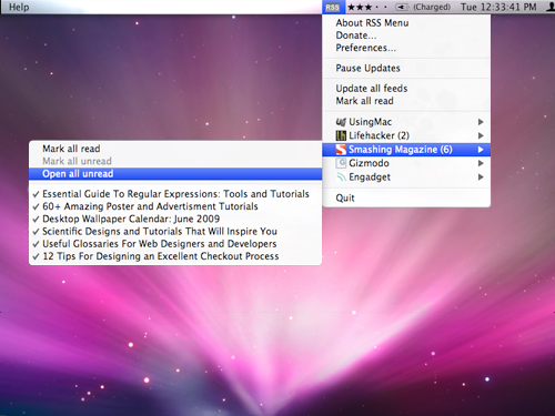 RSS Menu is a systemwide menu that allows you to read and organize your favourite RSS or Atom feeds.